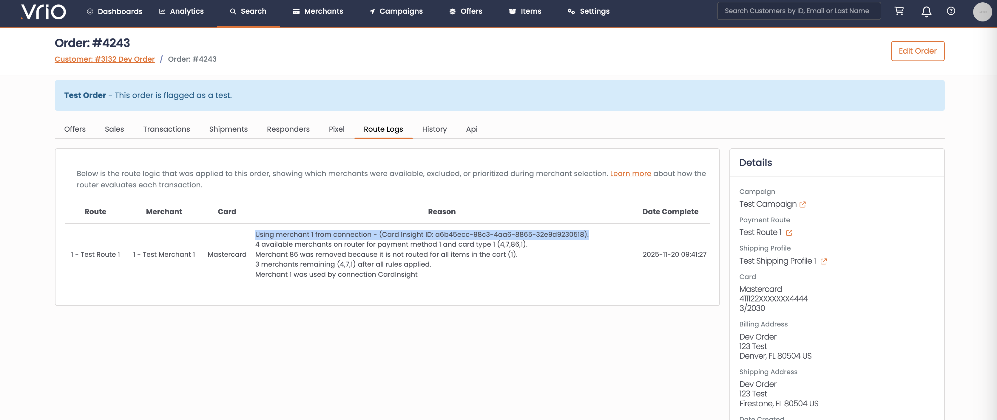 Q: Can I see Card Insight recommendations for past transactions? A: Yes, the Card Insight request ID and routing decision are permanently stored in the Route Logs for every transaction.