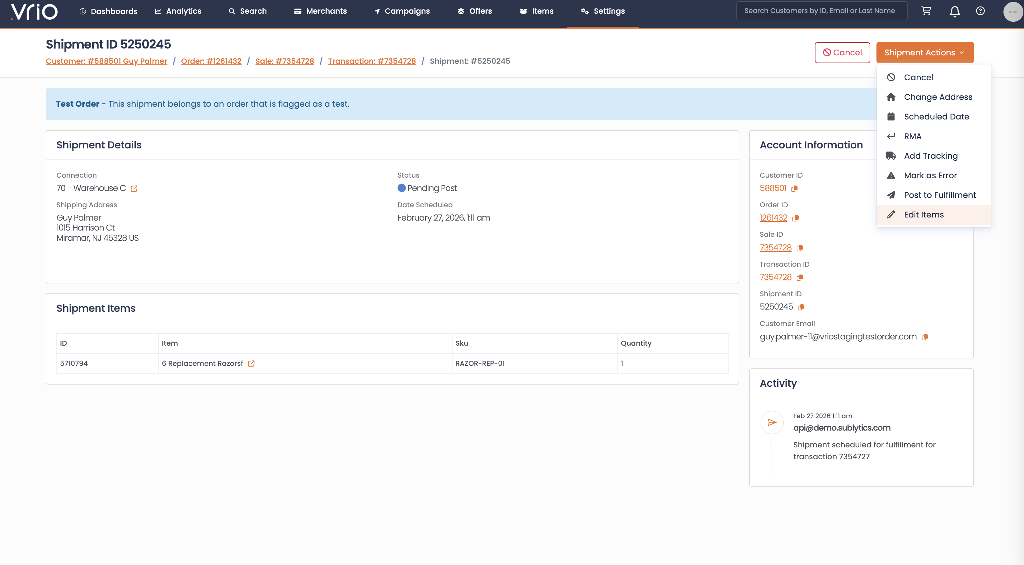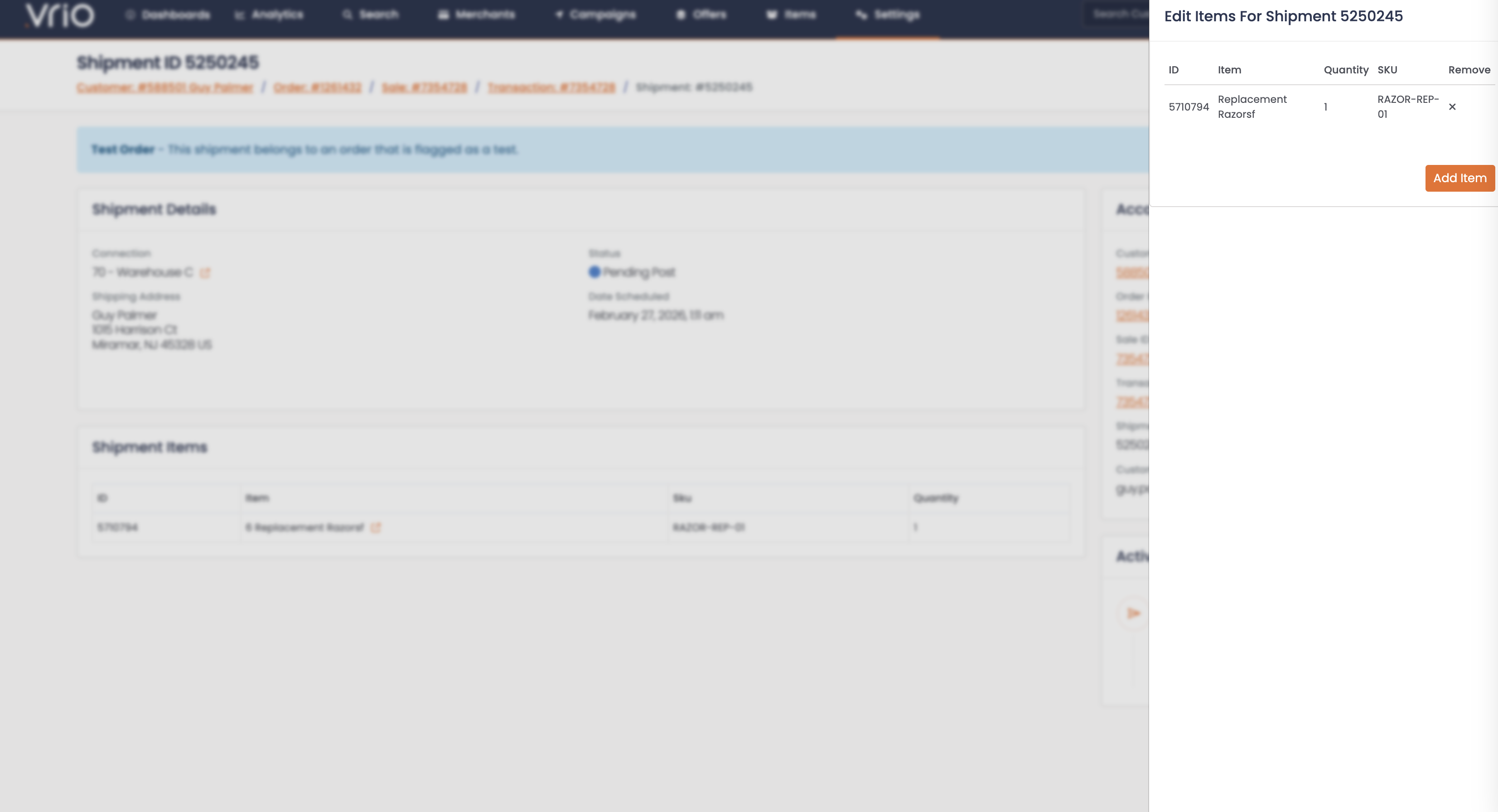 Editing shipment items allows you to add or remove products on a shipment before it is posted to fulfillment. This is useful for adjusting what gets shipped before the fulfillment provider processes the shipment.