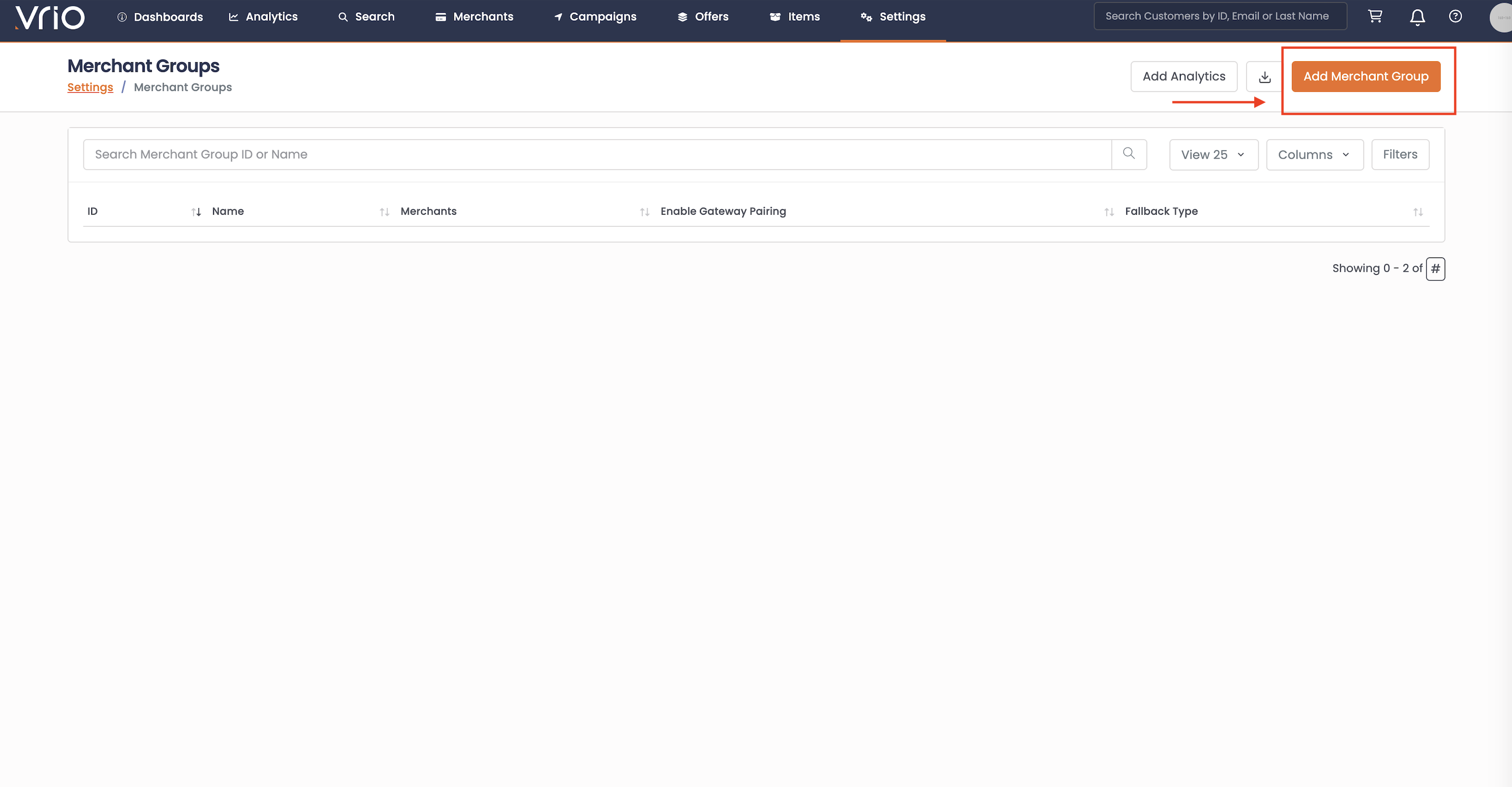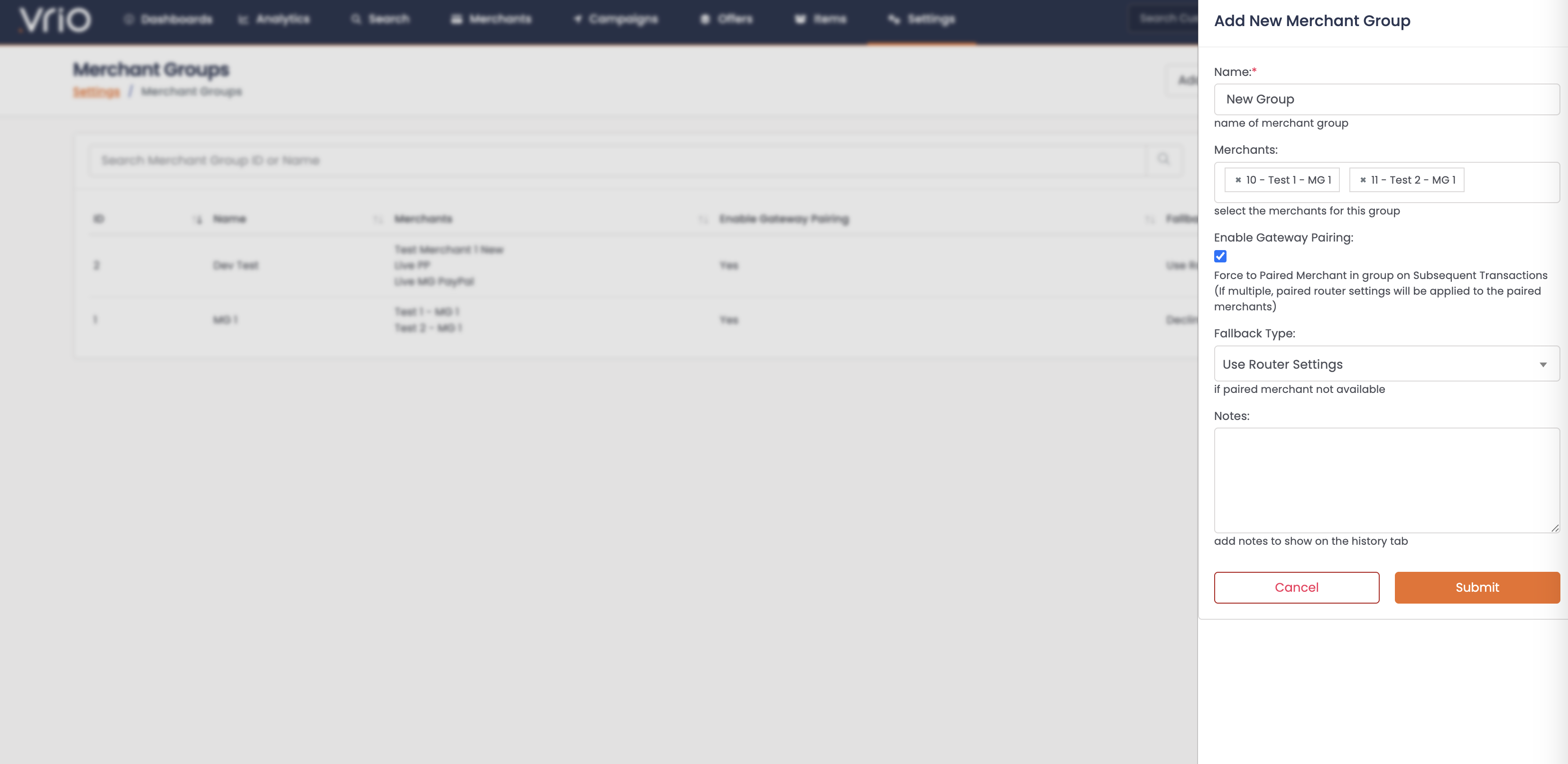 Navigate to Settings > Payment Configuration > Merchant Groups and click Add Merchant Group.