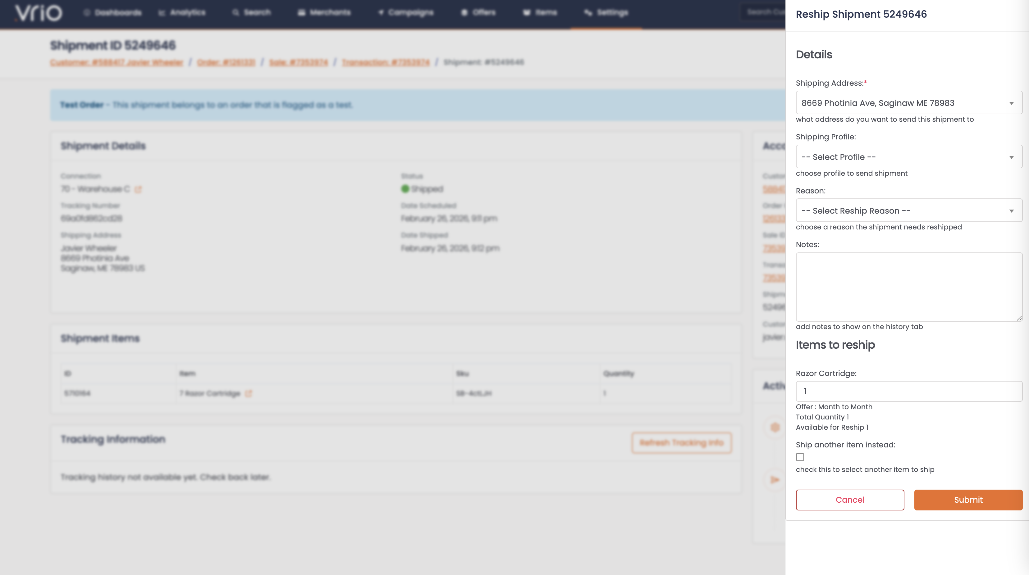 Shipping Profile (optional) — Select a different shipping profile for the reshipment, if applicable
