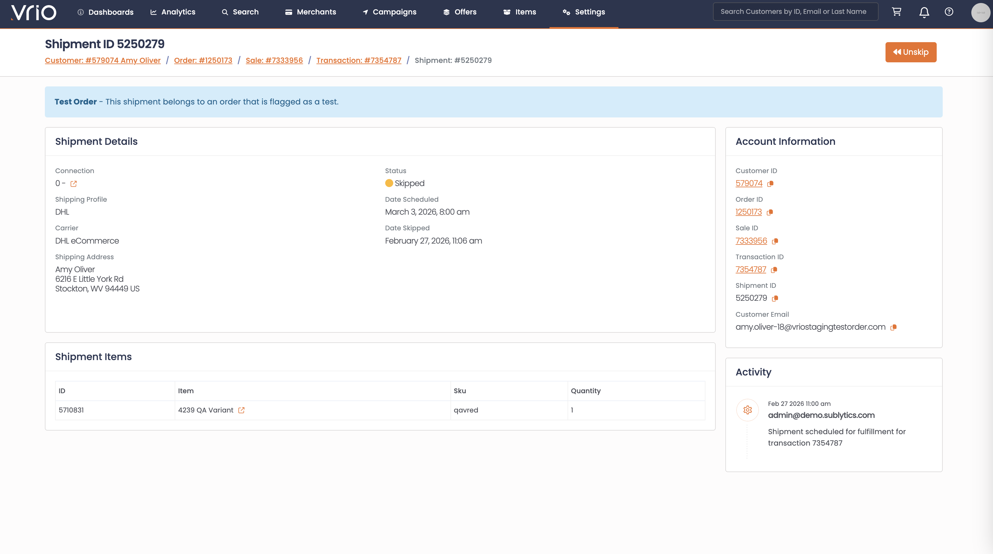 - Unskip can only be applied to the most recently skipped shipment