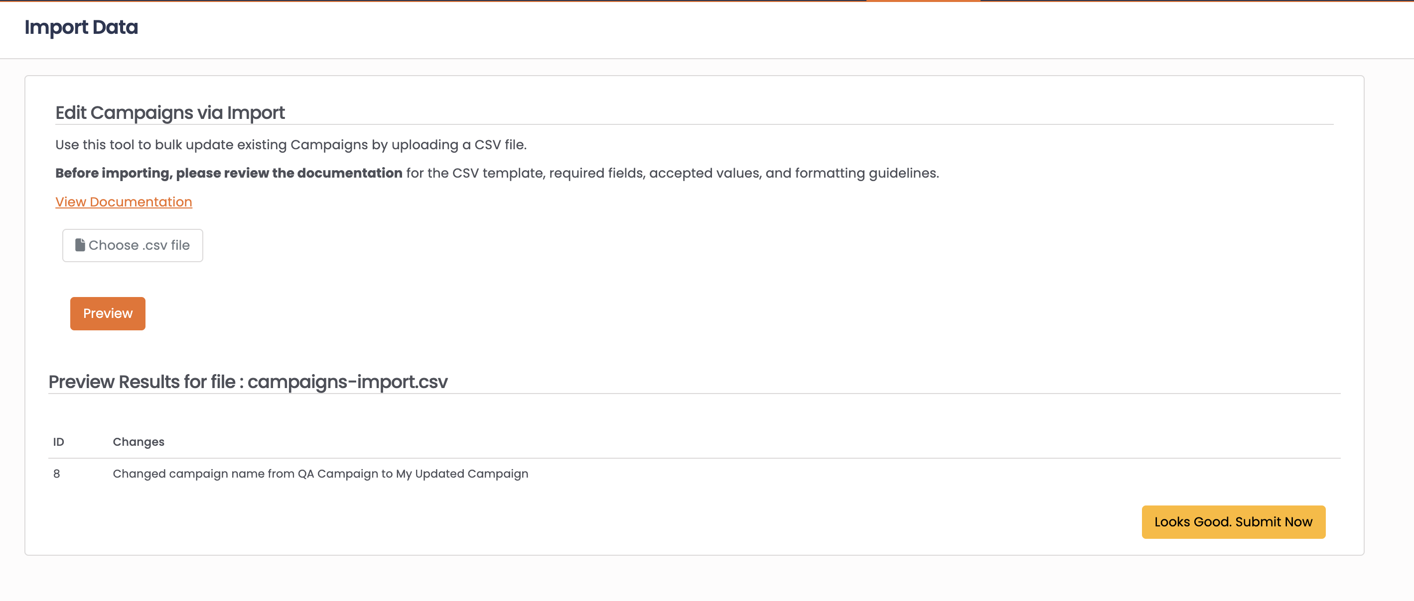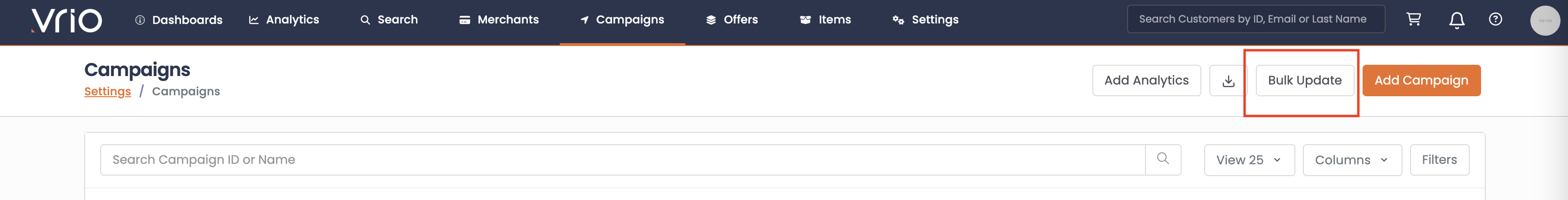 Bulk update campaign settings using CSV file import.