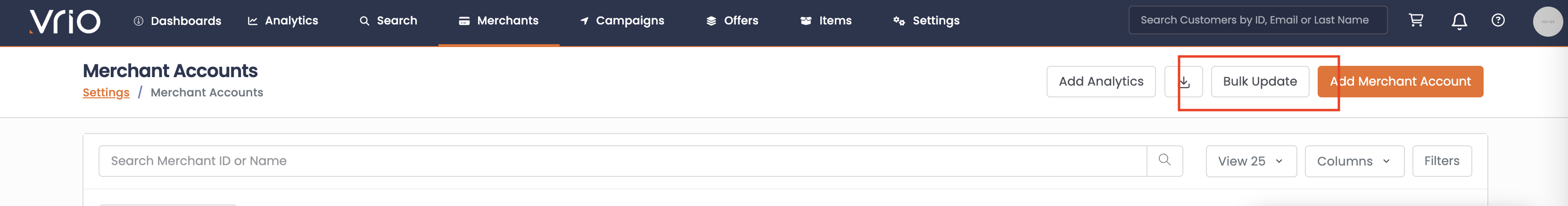 Merchant IDfield is required to identify records- Only include columns for fields you want to update