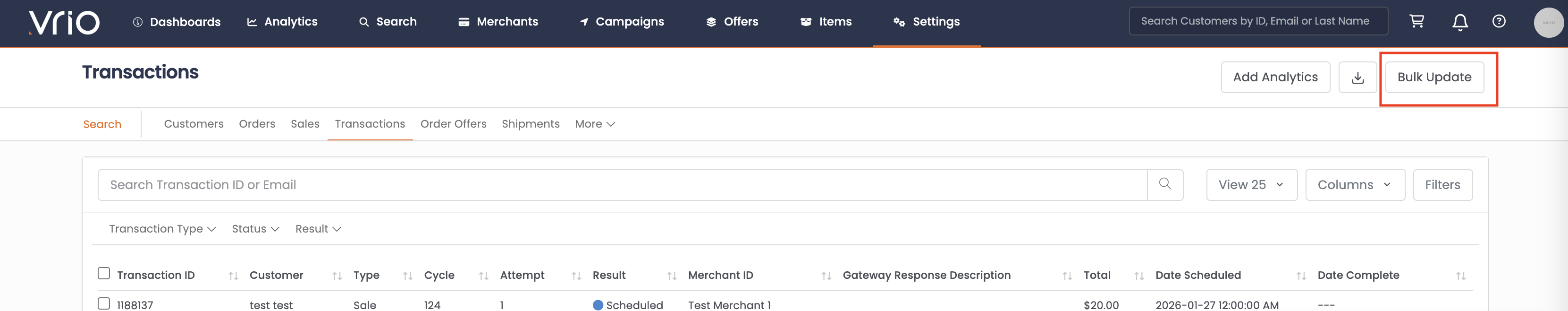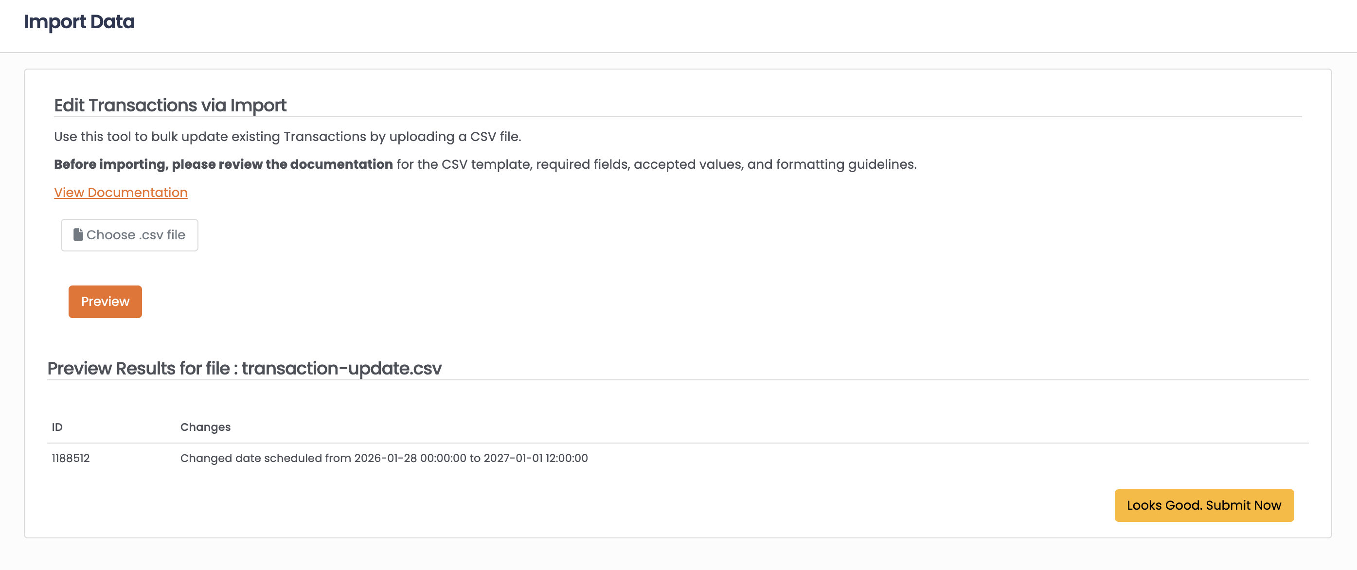Bulk update transaction records using CSV file import.