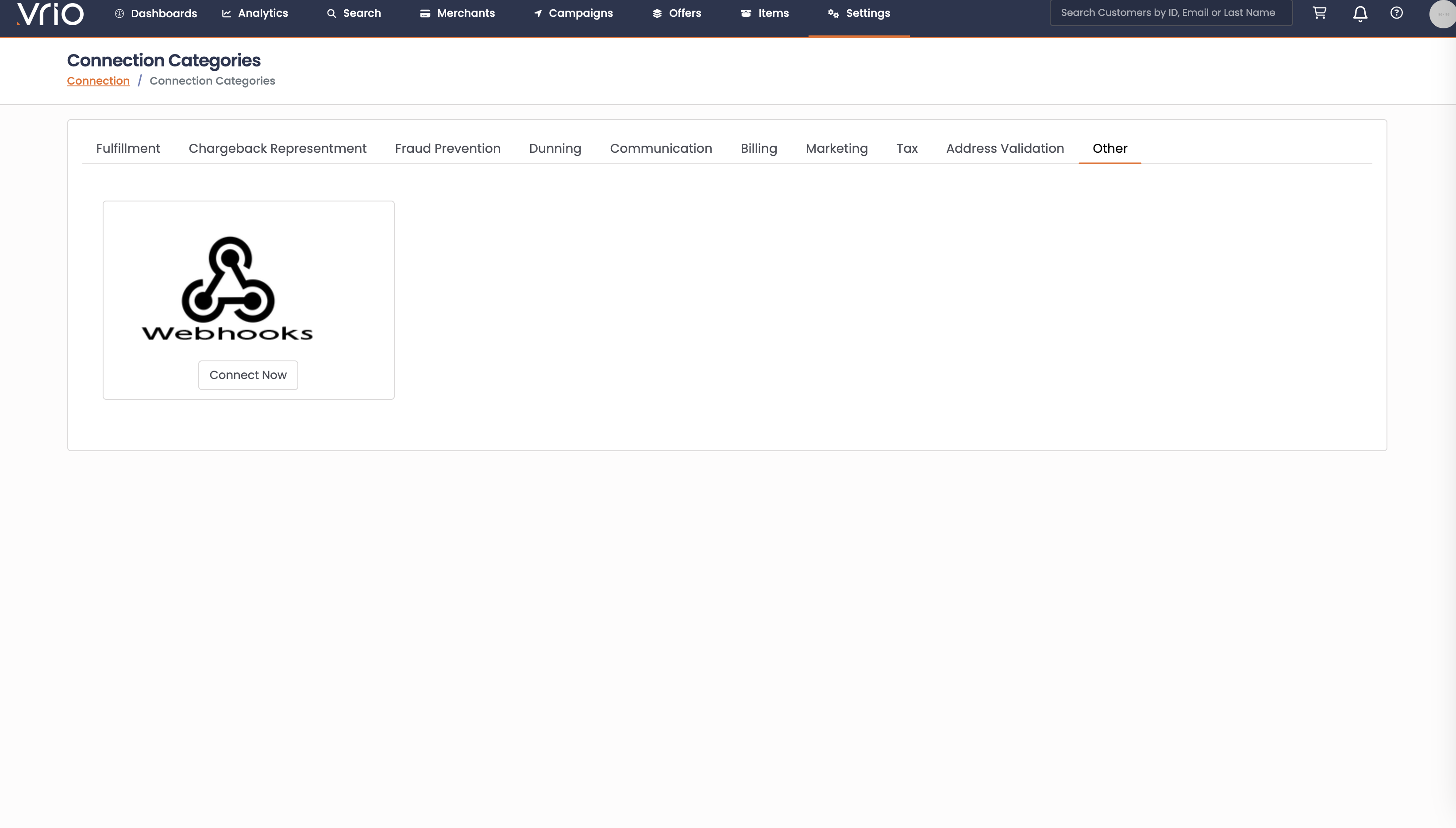 - Click "Connect Now" under the Webhook option
